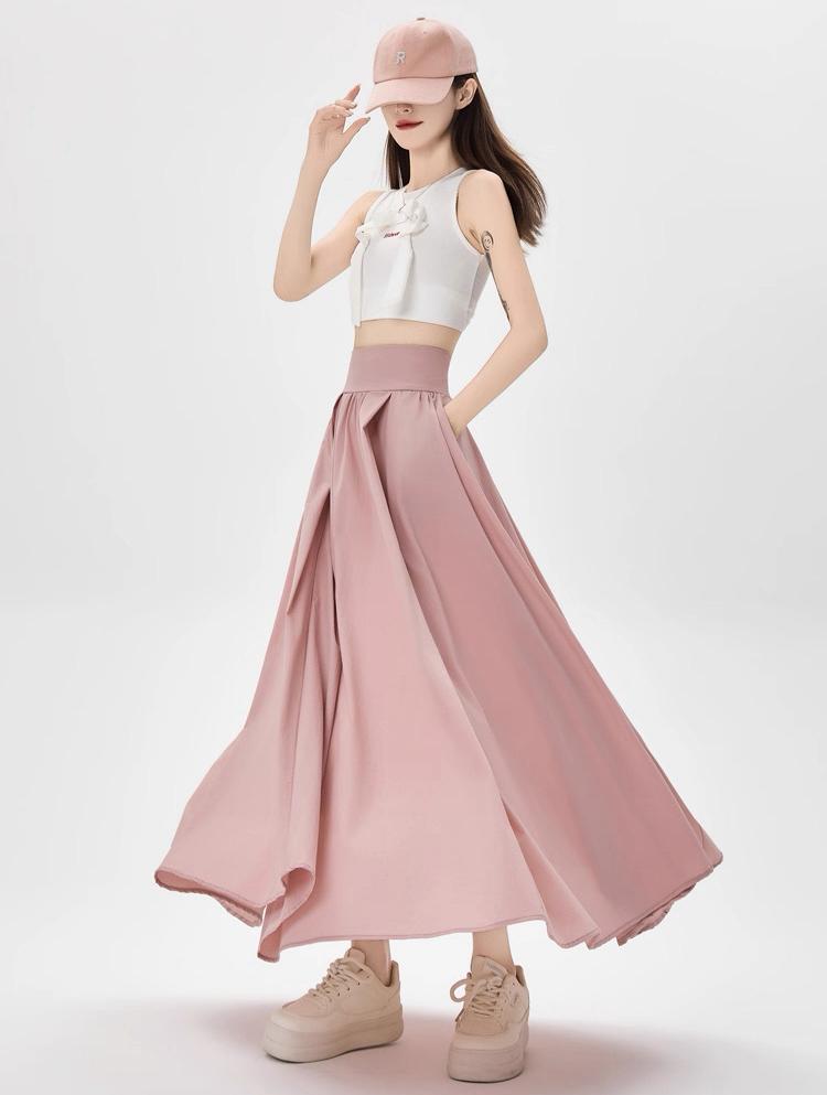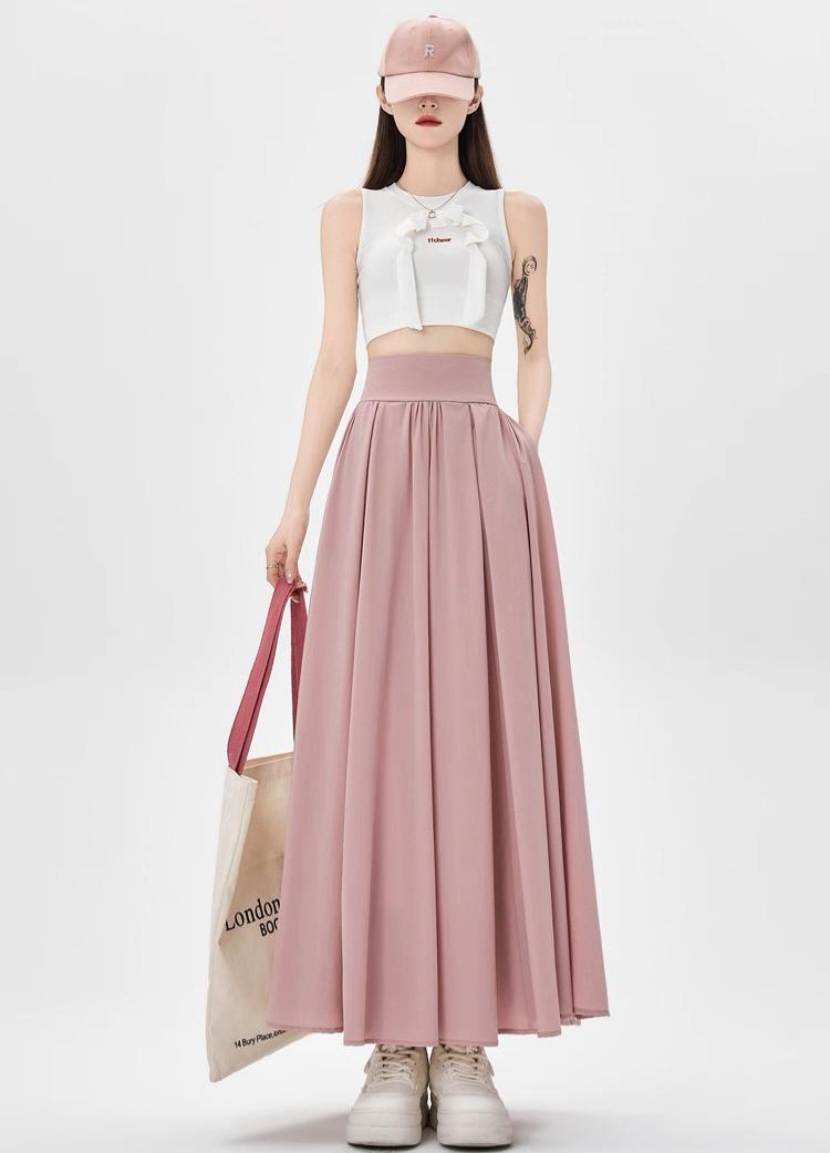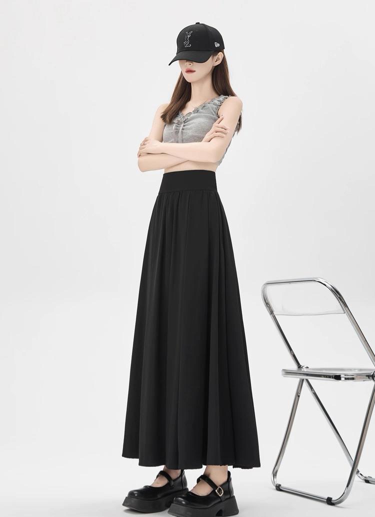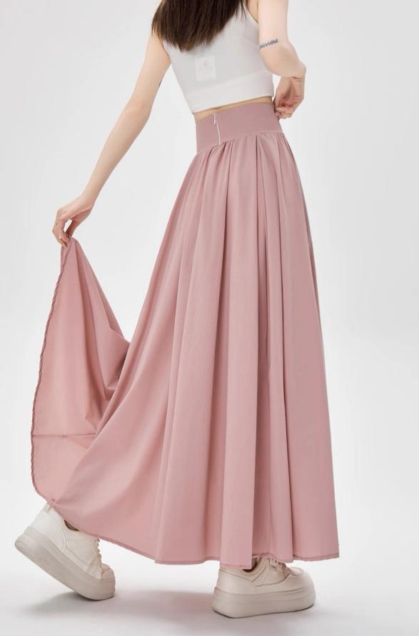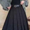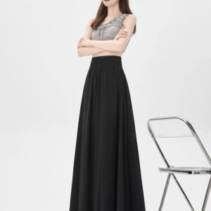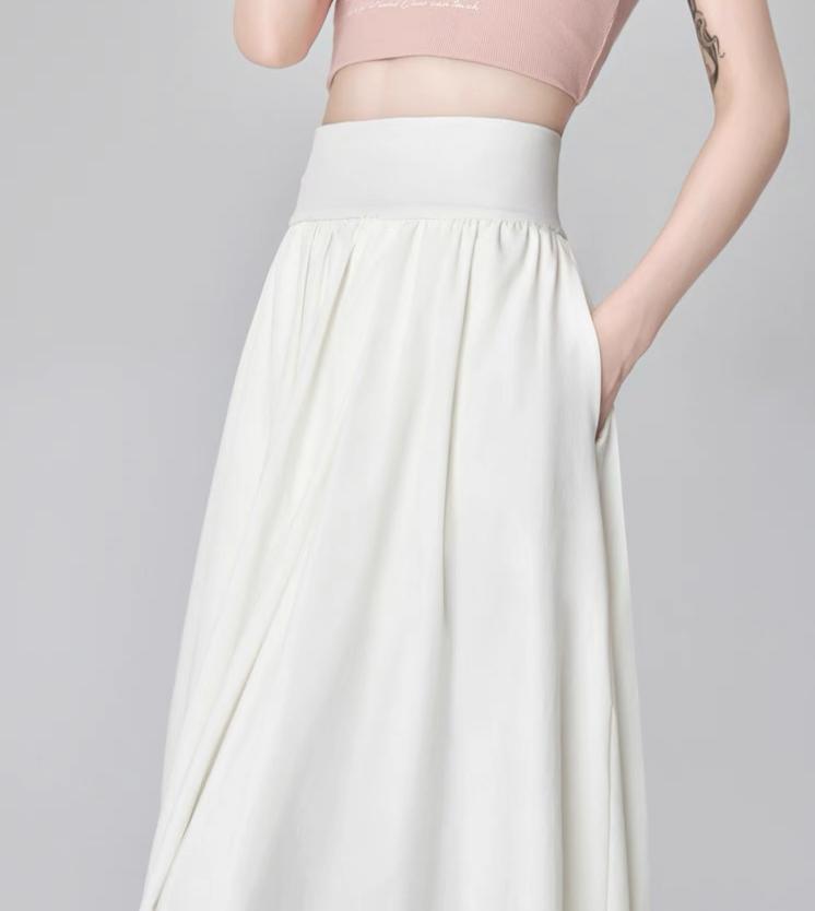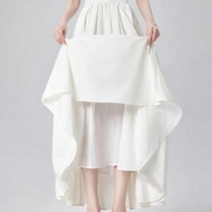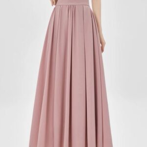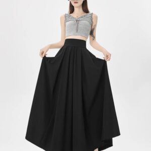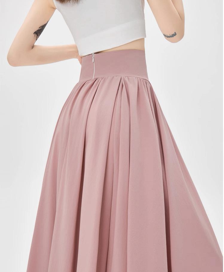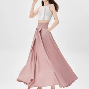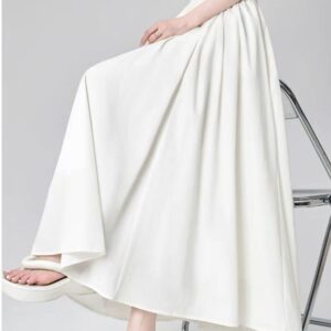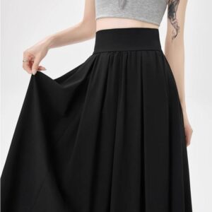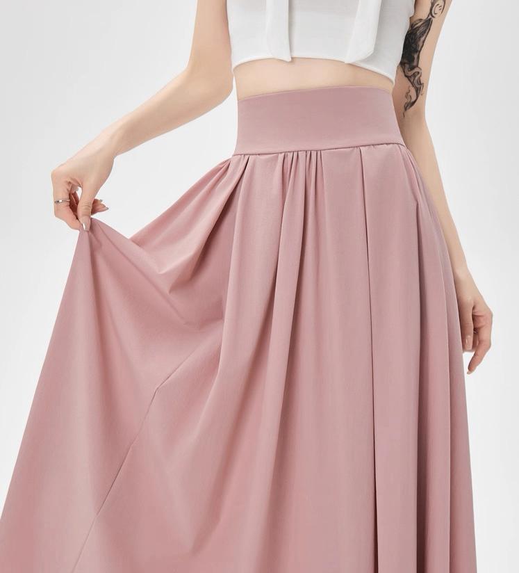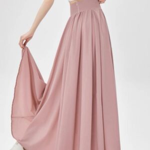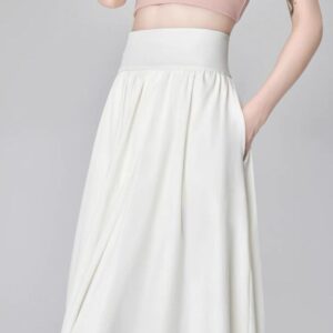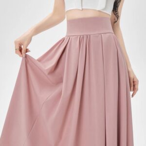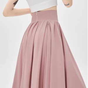 التصميم: تنورة بكسرات ناعمة وخفيفة (Pleated)، تتميز بـ خصر مرتفع وعريض جداً مصمم خصيصاً ليشد منطقة الخصر والبطن (Tummy Control) ويعطي مظهراً أنحف. تحتوي على سحاب خلفي مخفي ناعم، بطانة داخلية مريحة ولطيفة على البشرة، وجيوب جانبية عملية.