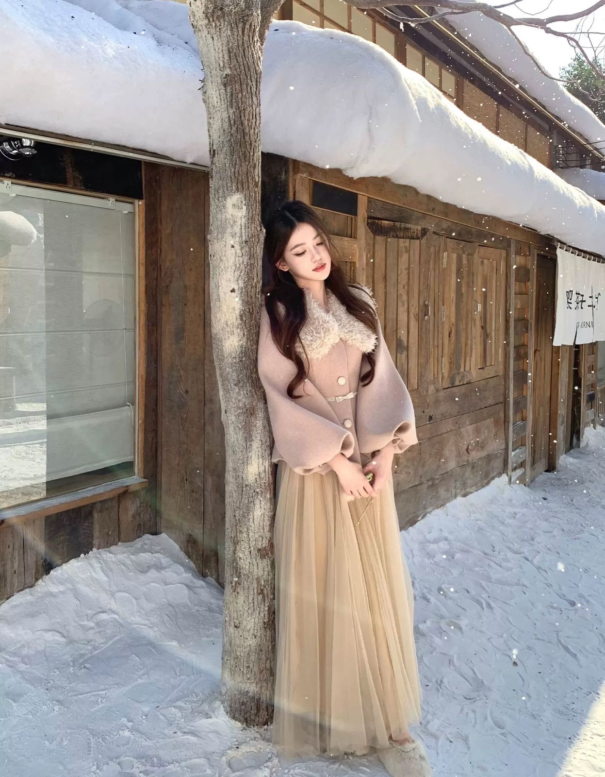 الأسلوب: نمط “الأناقة الأنثوية” (Femme Core) بلمسة حالمة، يجمع بين الدفء الشتوي والروح الرومانسية الرقيقة.