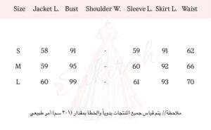 طول الأكمام: أكمام طويلة منفوخة تنتهي بأساور ضيقة.