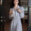 التصميم : رسمي , حزام ربط من الخلف , طبقة علوية على شكل قميص وسترة , أكتاف منتفخة