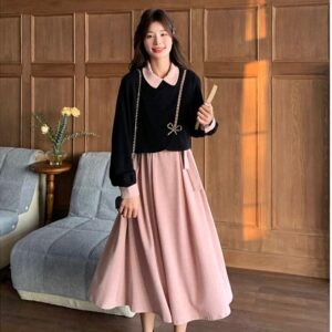 الأسلوب: كلاسيكي ناعم (Vintage/Mori Girl) يجمع بين الرقة والأسلوب المدرسي الراقي.